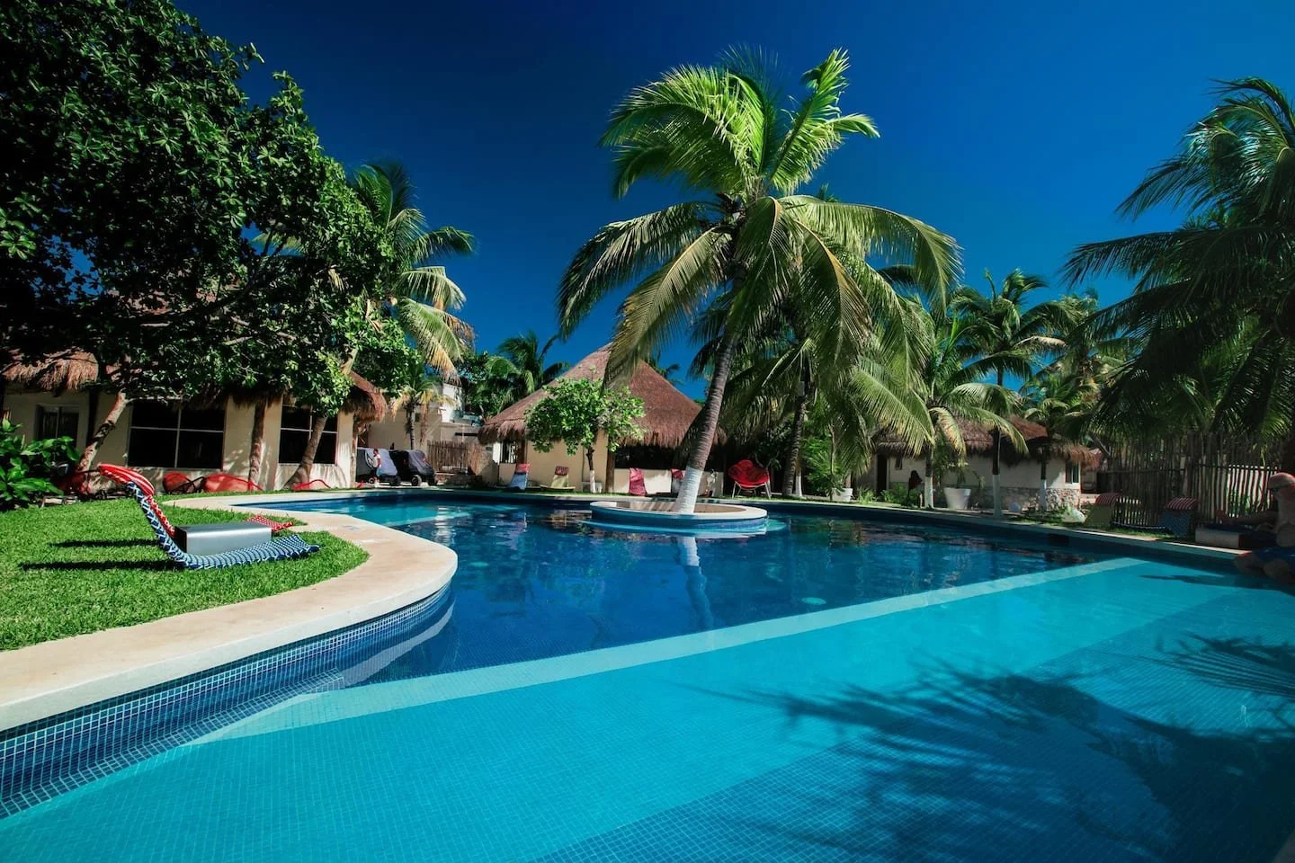ACCOMODATIONS Villa includes two queens beds per room, restaurant and beach club, on-site yoga studio, picturesque grounds with art decor, wifi, AC, hot water, spa, jacuzzi, gym, pool, mini fridge and hair dryer.